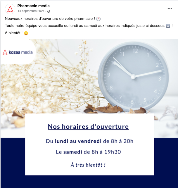 Pensez aussi à publier (de temps en temps) une photo de votre équipe pour humaniser la pharmacie. Les patients seront ravis de retrouver un visage “familier” sur la surface de vente 😉
