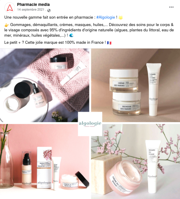 Montrez à vos abonnés la largeur de gammes de produits de votre pharmacie, ce qui vous différencie des autres, et donnez leur envie de venir en pharmacie pour découvrir ces nouveautés ! 🛍️